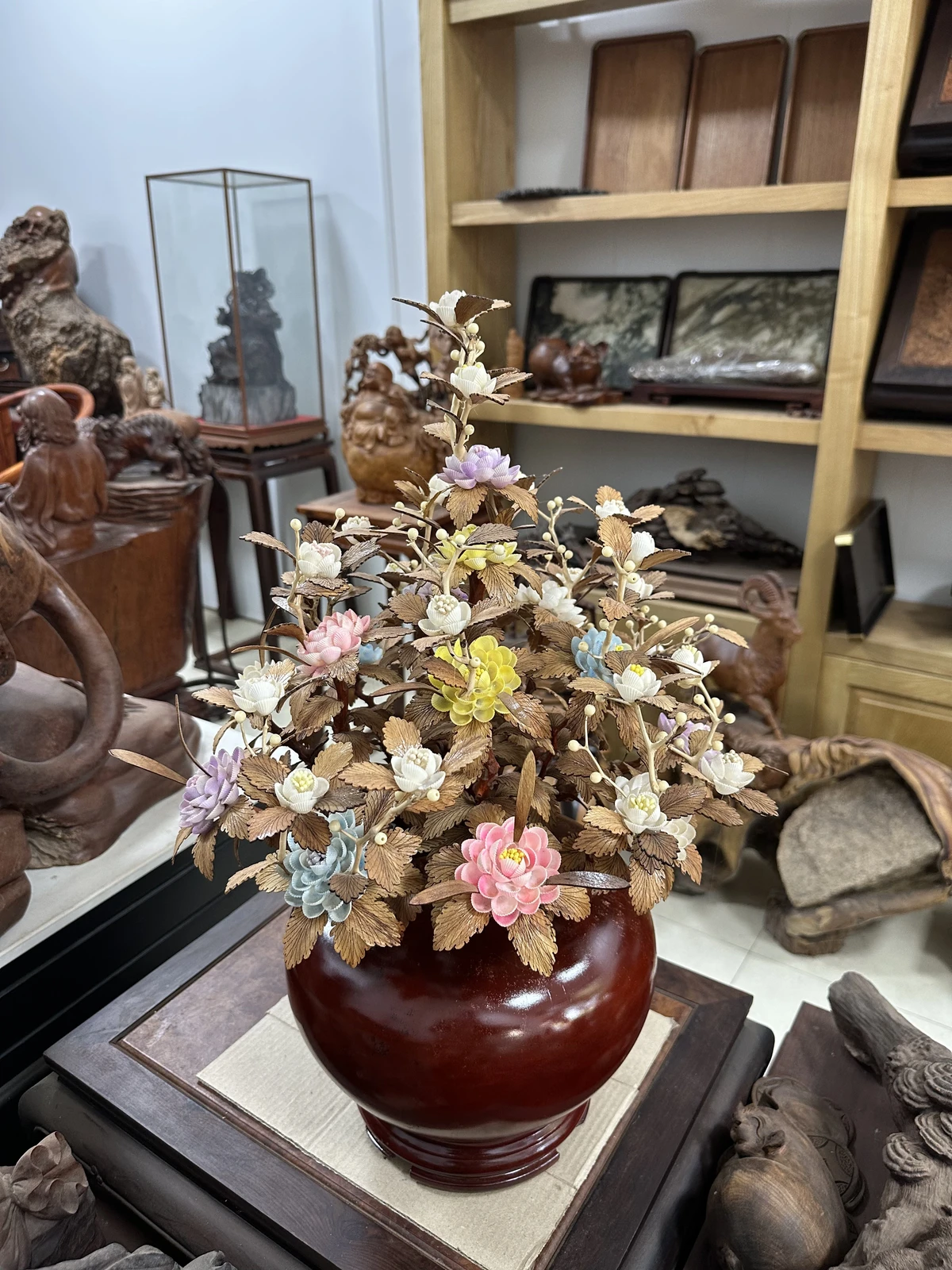 Bình Hoa Ngũ Sắc – Lá Gỗ Sưa, Bình Gỗ Cẩm Tây Bắc MQ09