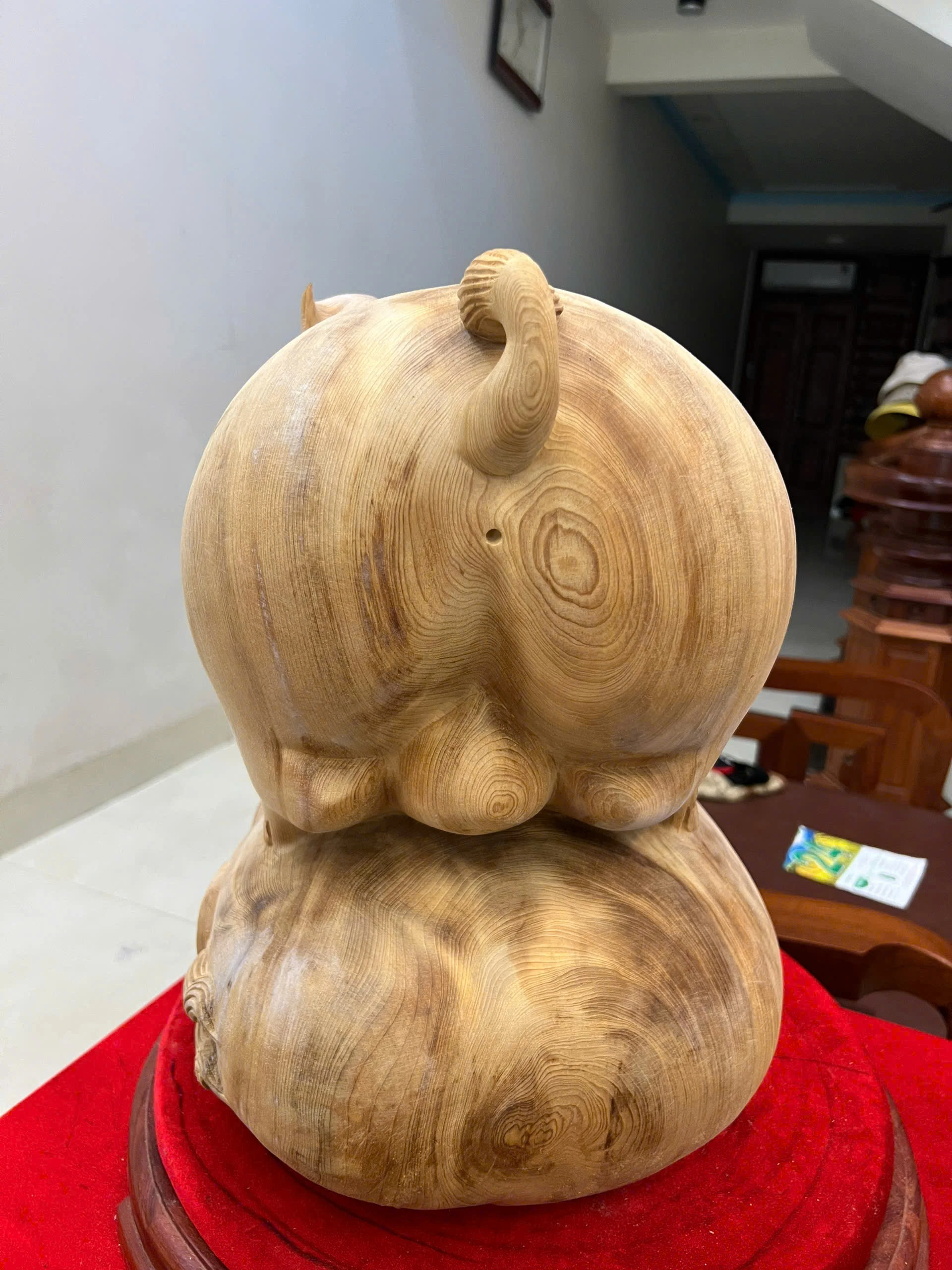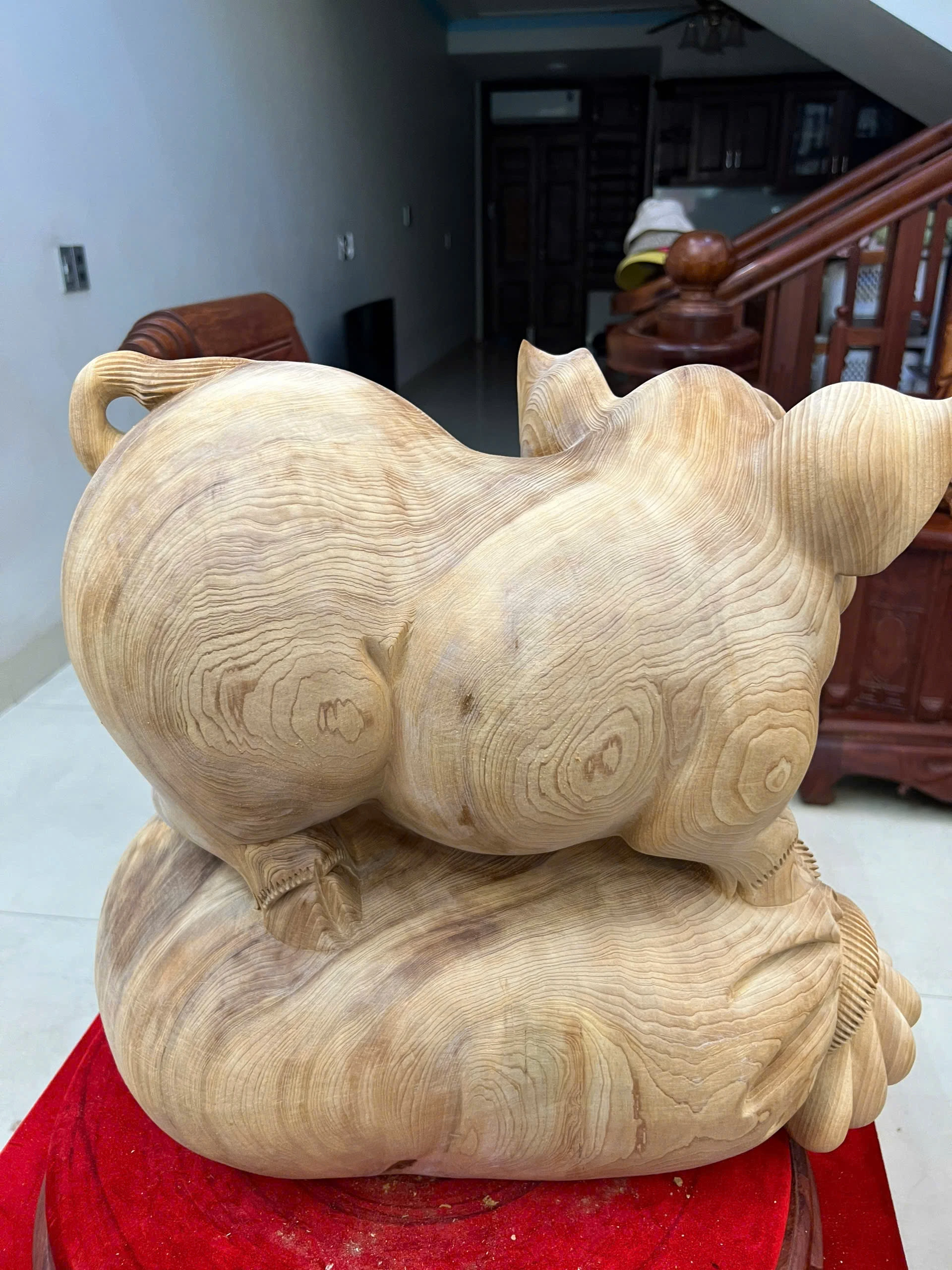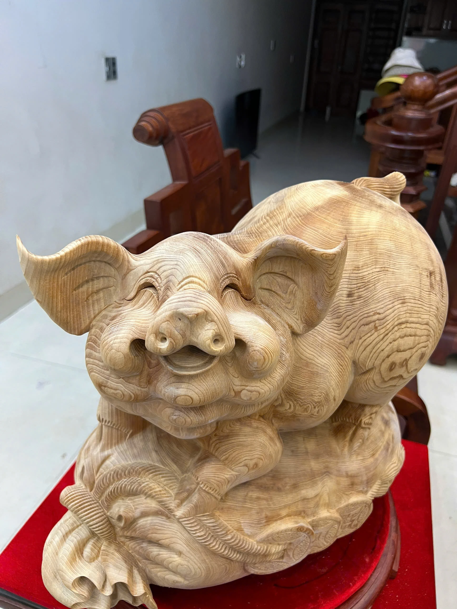 Tượng Heo Gỗ Ngọc Am Liền Khối To Mộc Đẹp Đang Lên Tuyết Cao 39, Ngang 43, Sâu 26