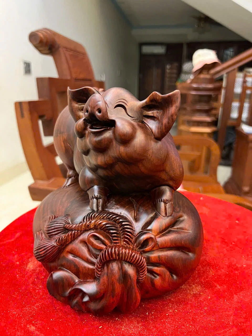 Tượng Heo Gỗ Trắc Việt Liền Khối Cao 19, Ngang 21, Sâu 18